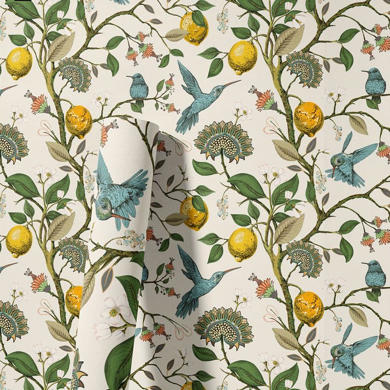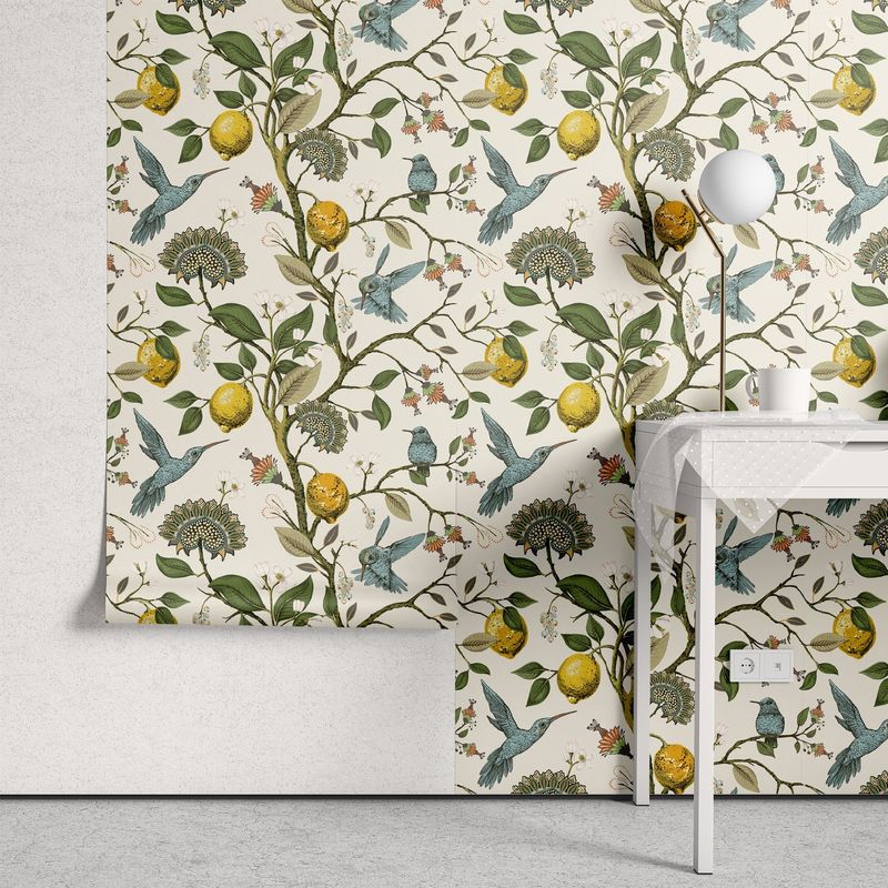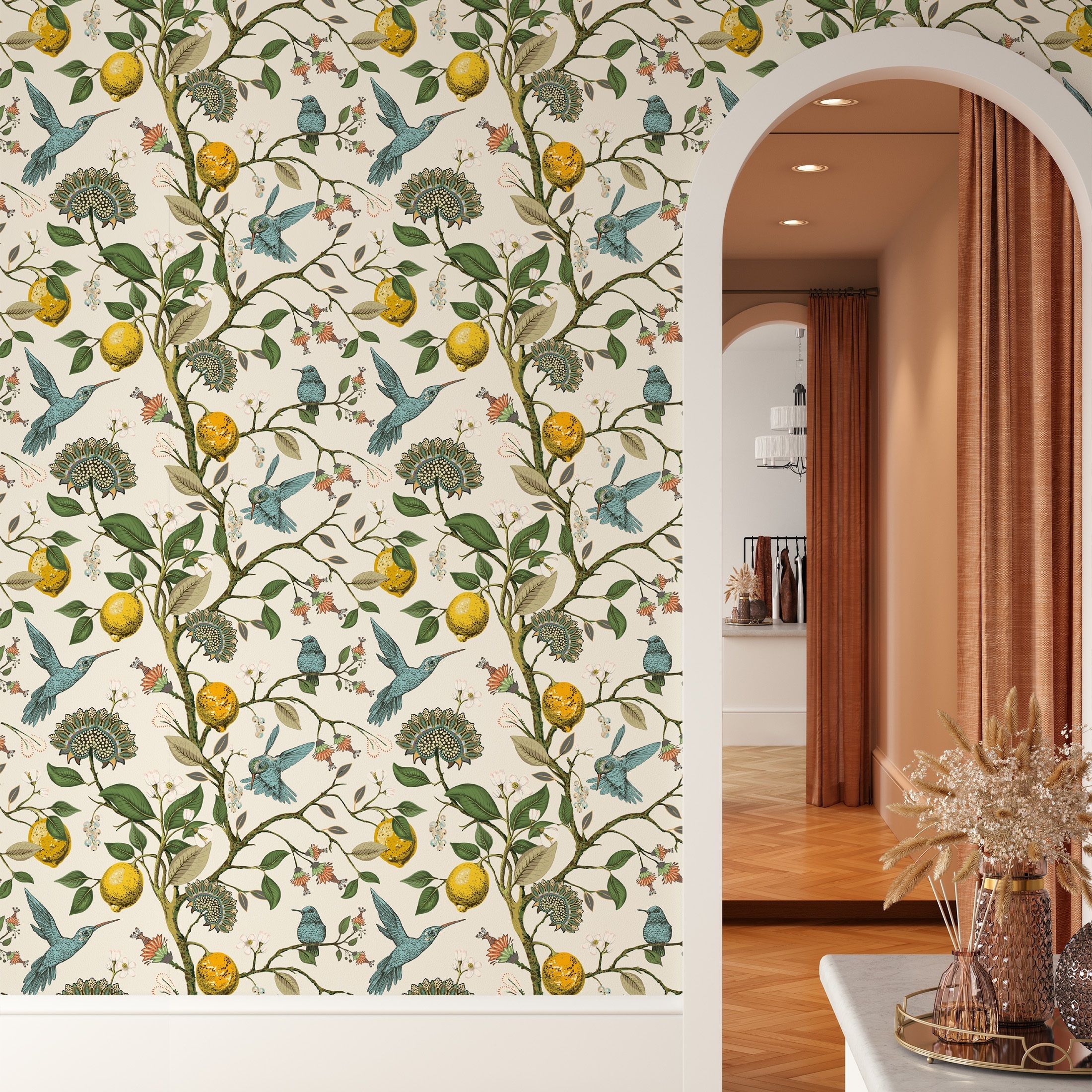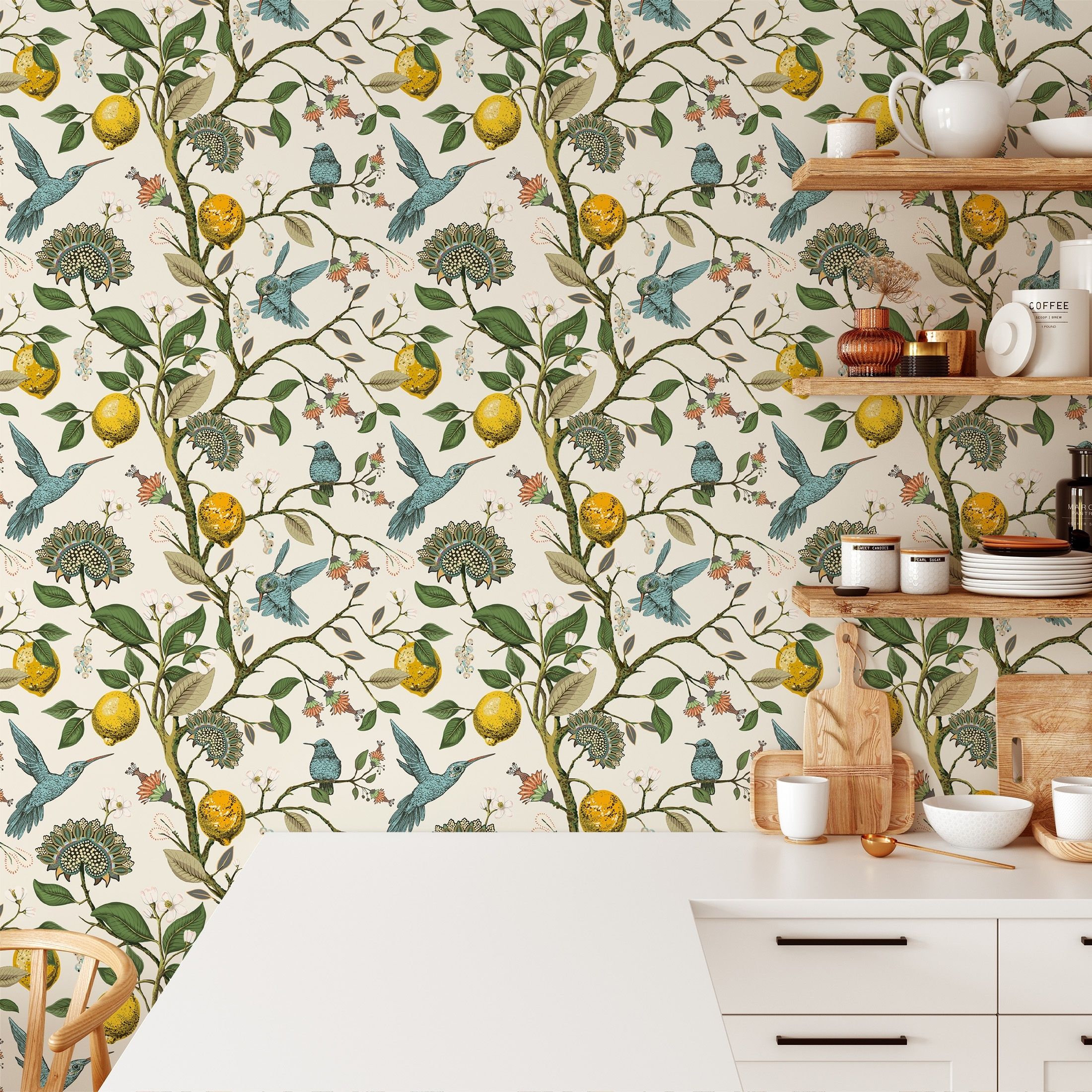 1 piece Bluebird self-adhesive wallpaper with black background and fresh lemon tree pattern