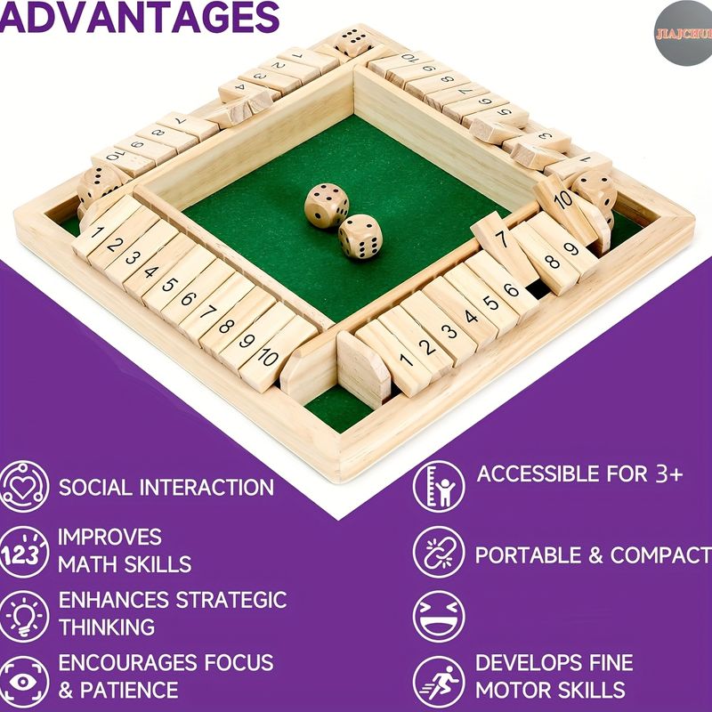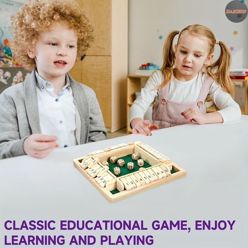 Elevate your family game night with this classic Shut The Box wooden board game! Made of high-quality solid wood with a sturdy 4-panel design, it’s built to last for endless rounds of fun. This set comes with 8 dice and easy-to-follow instructions, supporting 1–4 players of all ages.Perfect for improving math skills, concentration, and strategic thinking in kids, while also providing hours of entertainment for adults. Great for family gatherings, parties, travel, and classroom activities. A wonderful educational toy and thoughtful gift for birthdays and holidays!