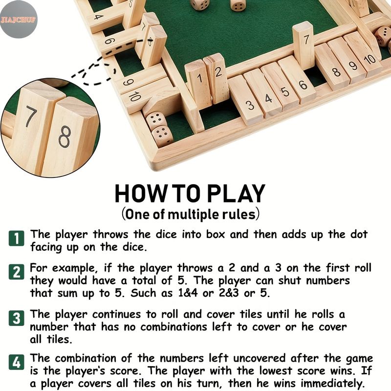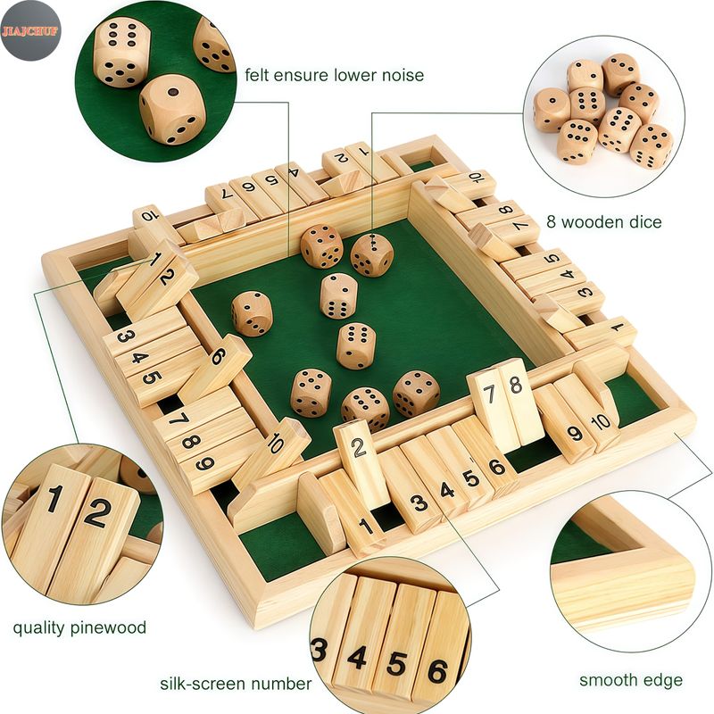 JIAJCHUF Shut The Box Game - Large Four-Sided Plank Game
