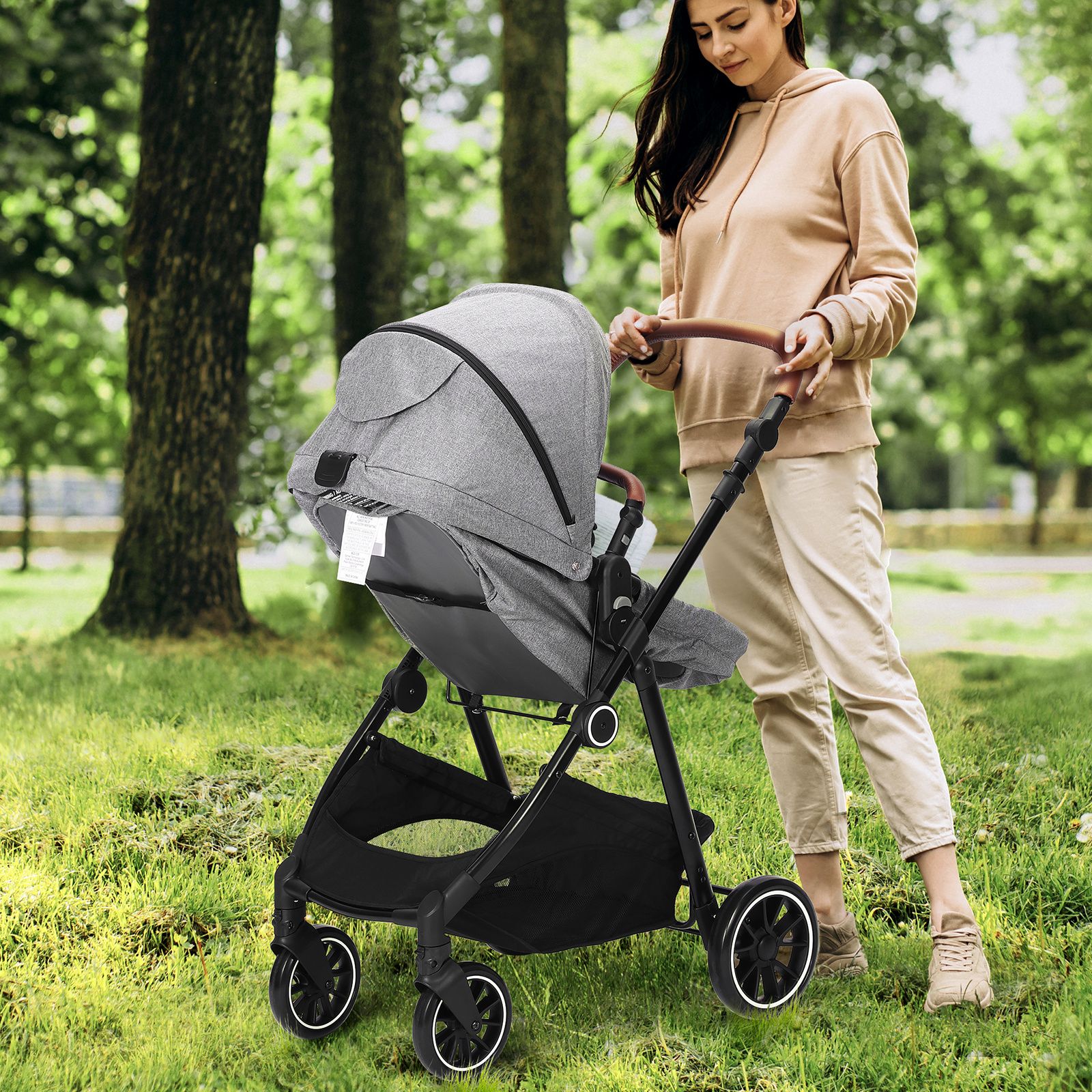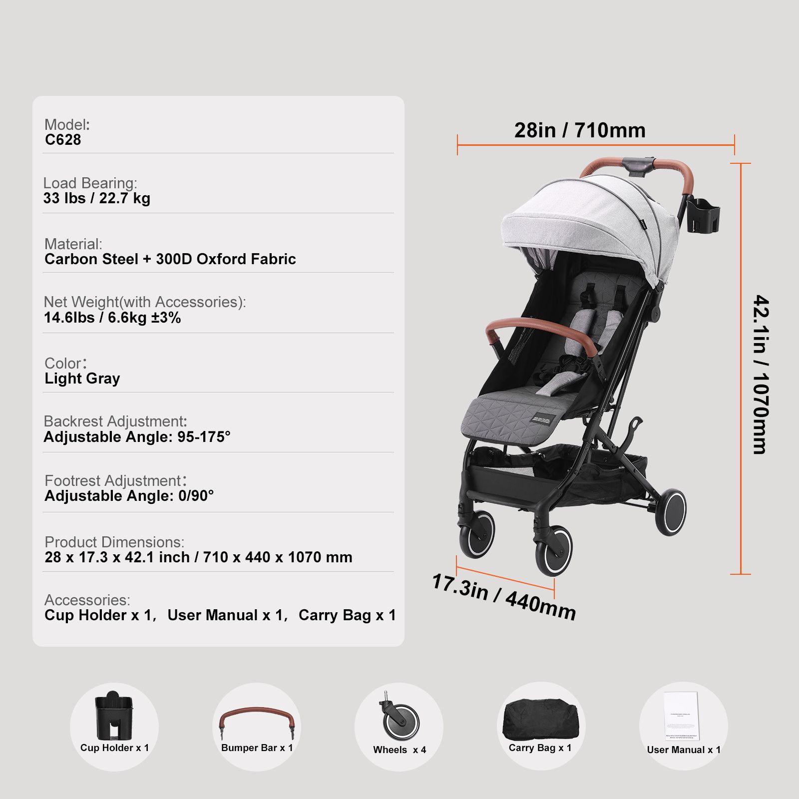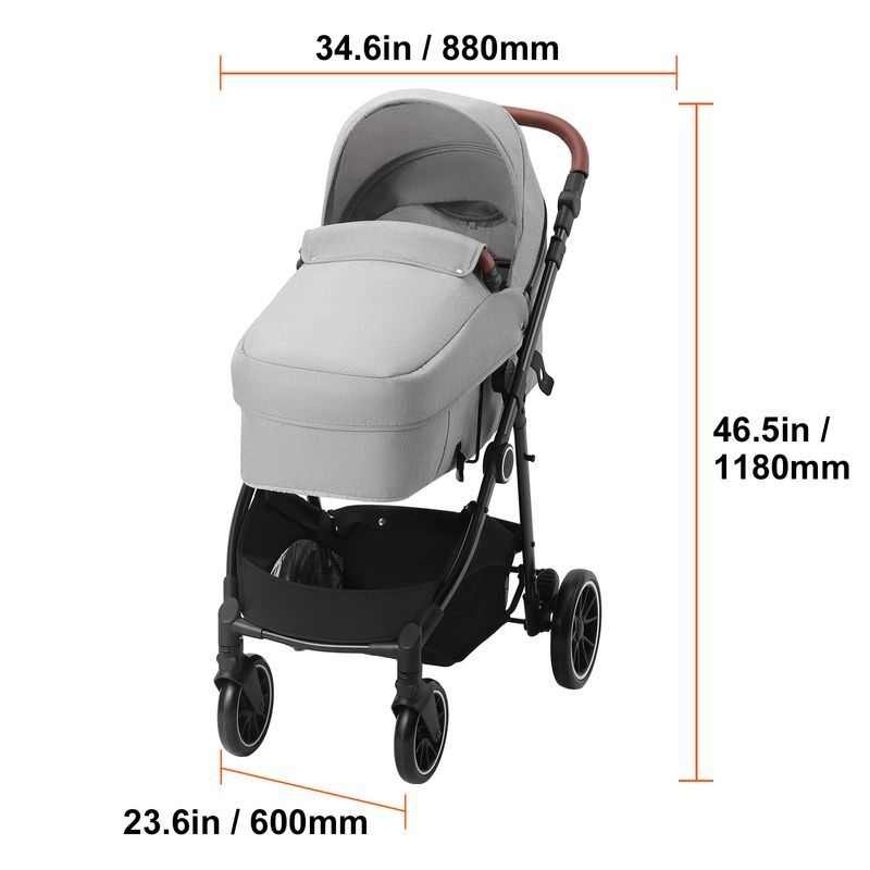 The foldable design saves space and fits easily in strollers, diaper bags, suitcases, or closets. Neutral light gray, dark gray, and light brown colors blend perfectly with any stroller or home decor. Strong handles and durable stitching ensure reliable carry for daily use, travel, hospital stays, and outdoor trips.